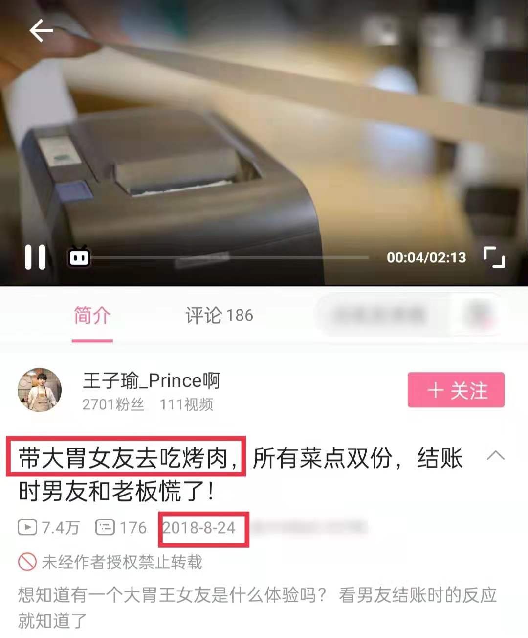 虽不曾公布过恋爱,却也躲不过眼尖的网友。早前二人的频繁互动,足以证明二人是真心相爱。早于2018年8月两人就合作拍摄了吃播视频,王子瑜还给视频标题配文到“带大胃女友去吃烤肉”,网友都认为两人发生了恋情,但是拍摄结束后这件事却再无下文,两人似乎默认双方只不过是普通的合作关系而已。