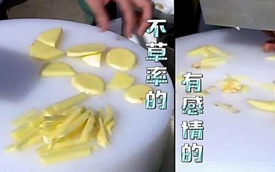 至于不太会做饭又可以做点饭,鹿晗简直就是超级吻合,看看这个土豆切的,那叫会做饭么?