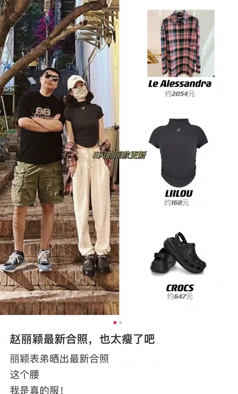 值得一提的是赵丽颖私下装扮接地气,T恤被扒只要168元,洞洞鞋647元,并非什么潮牌奢侈品。
