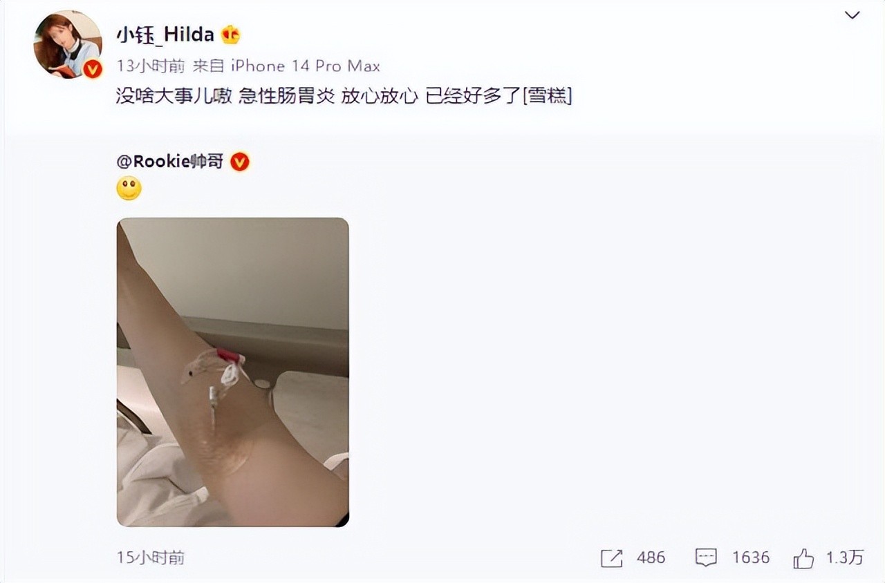 如今晒出入院吊水照片,小钰:没事就是肠胃问题