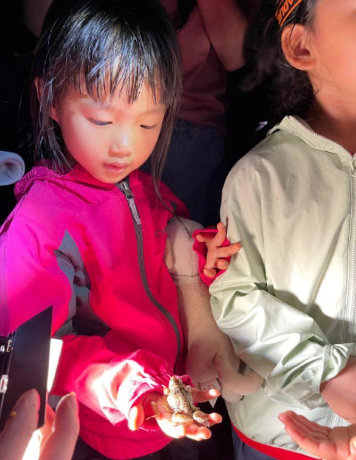 我不得不说,这个小女孩真的很勇敢,除了抓泥鳅,还抓蟾蜍。值得一提的是,茉莉花的低头,指下来的公交车特别明显,外观很漂亮,真的更像妈妈姚晨!
