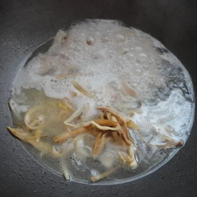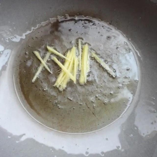 第4步、锅加热后加放适量的食用油,放入生姜丝爆香