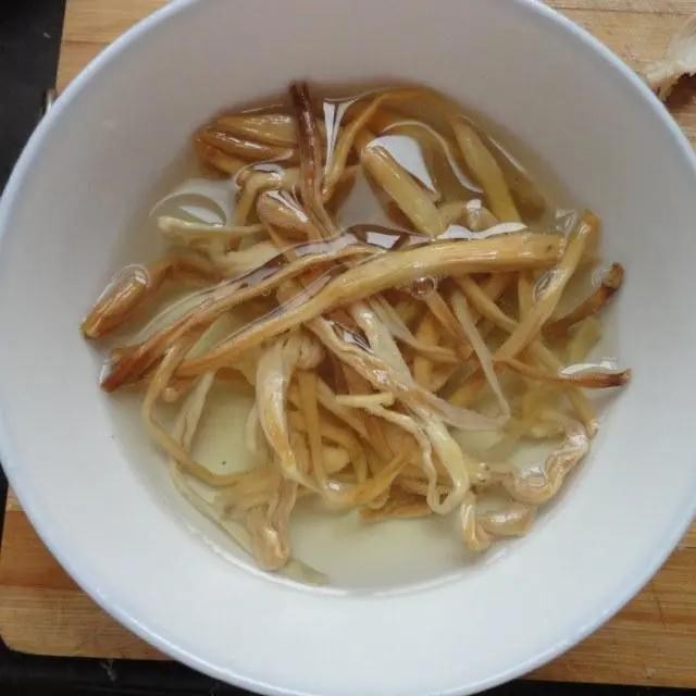 第2步、黄花菜用热开水泡一下