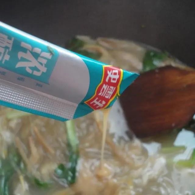 第8步、出锅前加入一袋浓醇猪骨高汤拌均匀装碗即可开吃了。