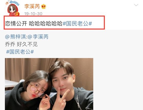 看起来两人关系确实不错。李溪芮还转发了熊梓淇的微博,配文为“恋情公开”。然而后来两人都辟谣了,
