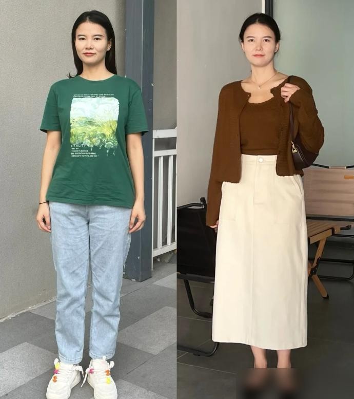 (1)裤装vs裙装的对比,120斤女人来感受下差异