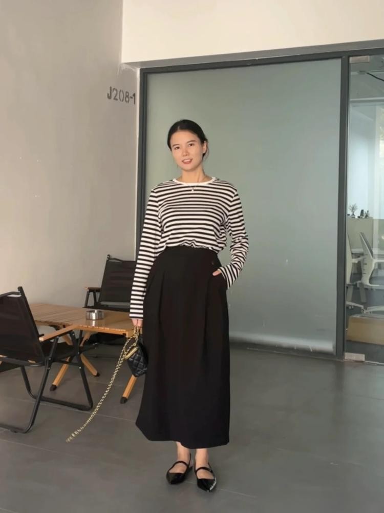 如果是梨型身材,臀部有赘肉,大腿粗而且腿型不好看,也不建议你选择紧身的裙子,虽然可能会和你的身材更加贴合,但对于我们胯宽腿粗的问题没有修饰效果,反而还会放大这个缺点,如果要穿裙子的话,可以试试这种A字裙,借助A字裙的廓形摆脱身材的臃肿感,扬长避短。