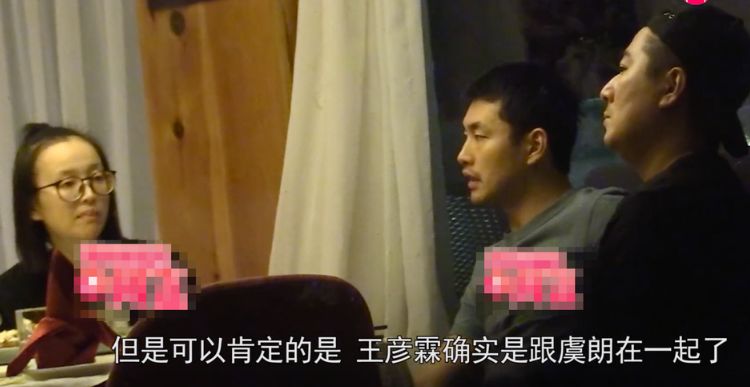 两人当晚在北京的某餐馆与友人吃饭,当天王彦霖穿着一件灰色上衣,虞朗也穿着一件黑色短T恤,下身穿着一条奶奶裤,素颜出席打扮十分随意。