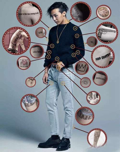 韩国bigbang组合成员权志龙出道以来受到很多粉丝的追捧,众所周知权志龙非常喜欢纹身,全身纹身多达时机处,甚至还有继续增加的可能性,看来纹身真的是会上瘾,让人根本停不下来。下面看看权志龙纹身含义。
