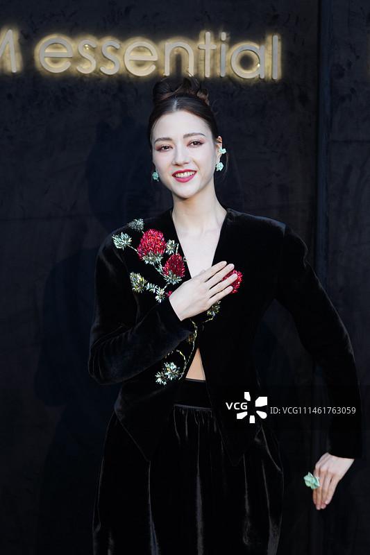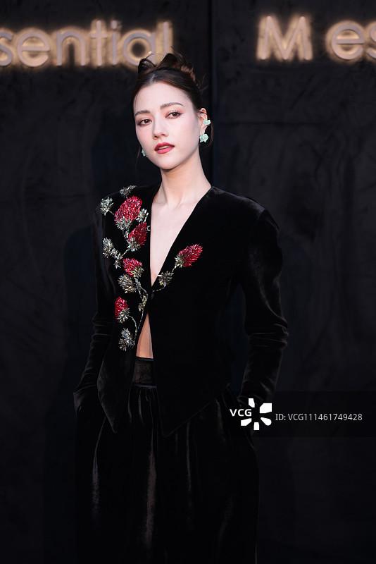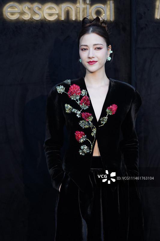 2023 年 10 月 29 日,上海,娜然身穿黑色丝绒裙装出席活动。