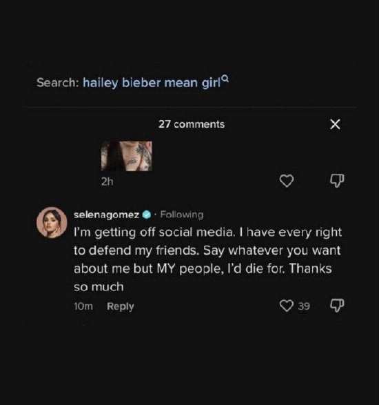 冰释前嫌?我装的!赛琳娜为霉霉开怼海莉·比伯