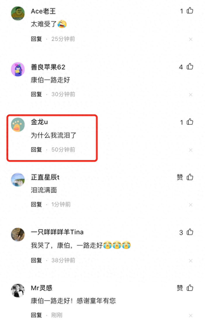 “康伯代表着一代80后,甚至90后人的记忆,康伯带着这一代人的记忆离开了。”