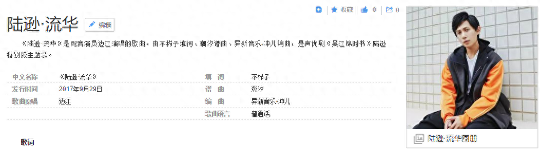 边江大大唱的这首歌曲是纪念三国东吴名将陆逊的!大家都知道,陆逊曾在湖北夷陵跟蜀汉刘备对战过,巧的是,《魔道祖师》里的“女主角”魏无羡就是号称夷陵老祖~
