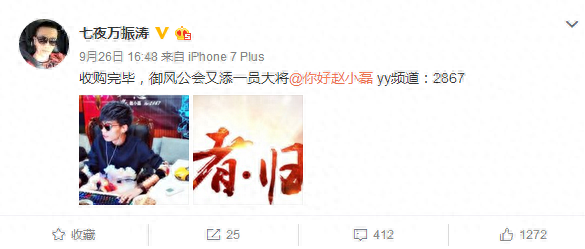 YY七夜近日开通微博,自曝真实姓名:万振涛!