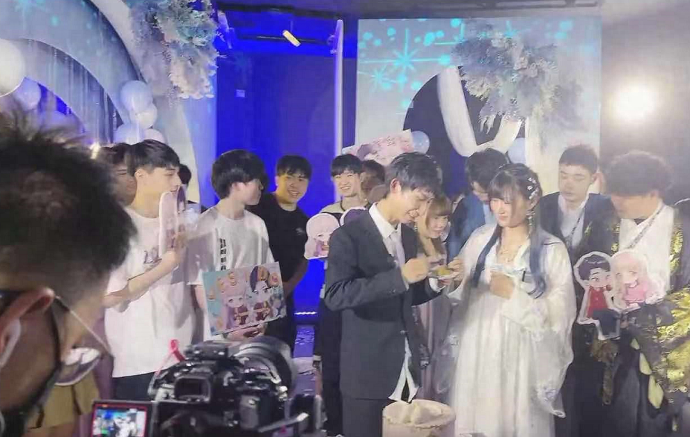随着剧本的进行,兮兮被带到了求婚现场。两人从相识到相知的过程被重新演绎了一遍,播放完视频之后,梦泪也穿着西装缓缓走出。梦泪单膝跪地,拿出钻戒求婚的时候,现场的所有人都在说“嫁给他”,梦泪说话的时候已经明显有些哽咽了,兮兮也感动落泪。梦泪一直都是个内向的人,有点不善言辞,可能兮兮也没想到梦泪能准备这么隆重的求婚仪式。整个求婚过程都在企鹅电竞进行了直播,全网都见证了他们的爱情。