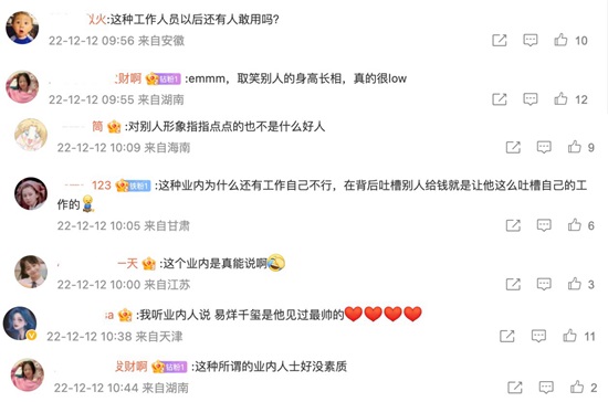 12月12日,有八卦博主曝出疑似工作人员私下吐槽易烊千玺的录音片段,而易烊千玺的真实身高再次被吐槽。