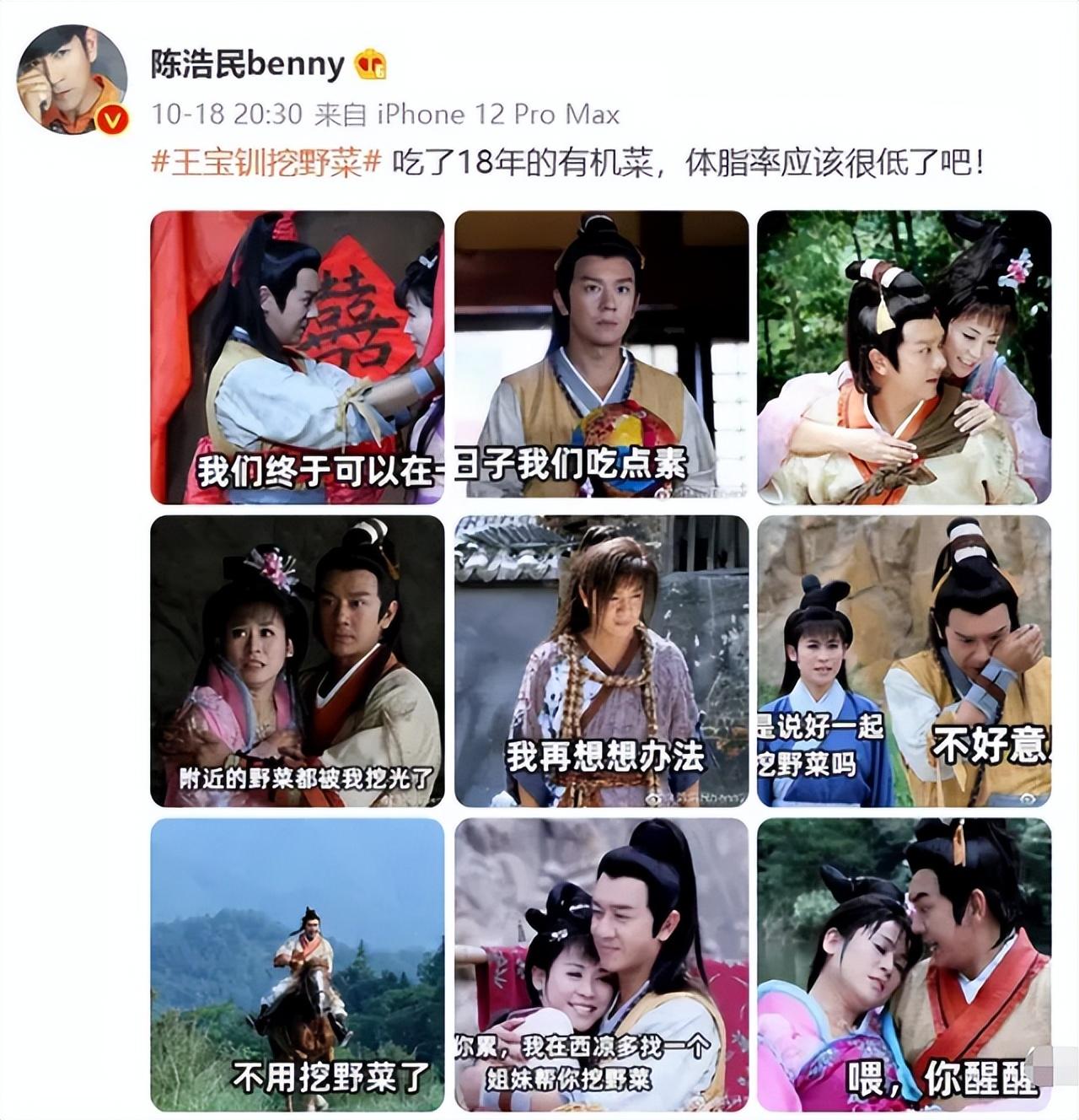 不过这部戏的戏外部分更精彩,当剧中的王宝钏苦守寒窑只能挖野菜度日,而薛平贵带小三归来时,挖野菜被调侃成一种梗!但陈浩民却不恰当的玩了这个梗!
