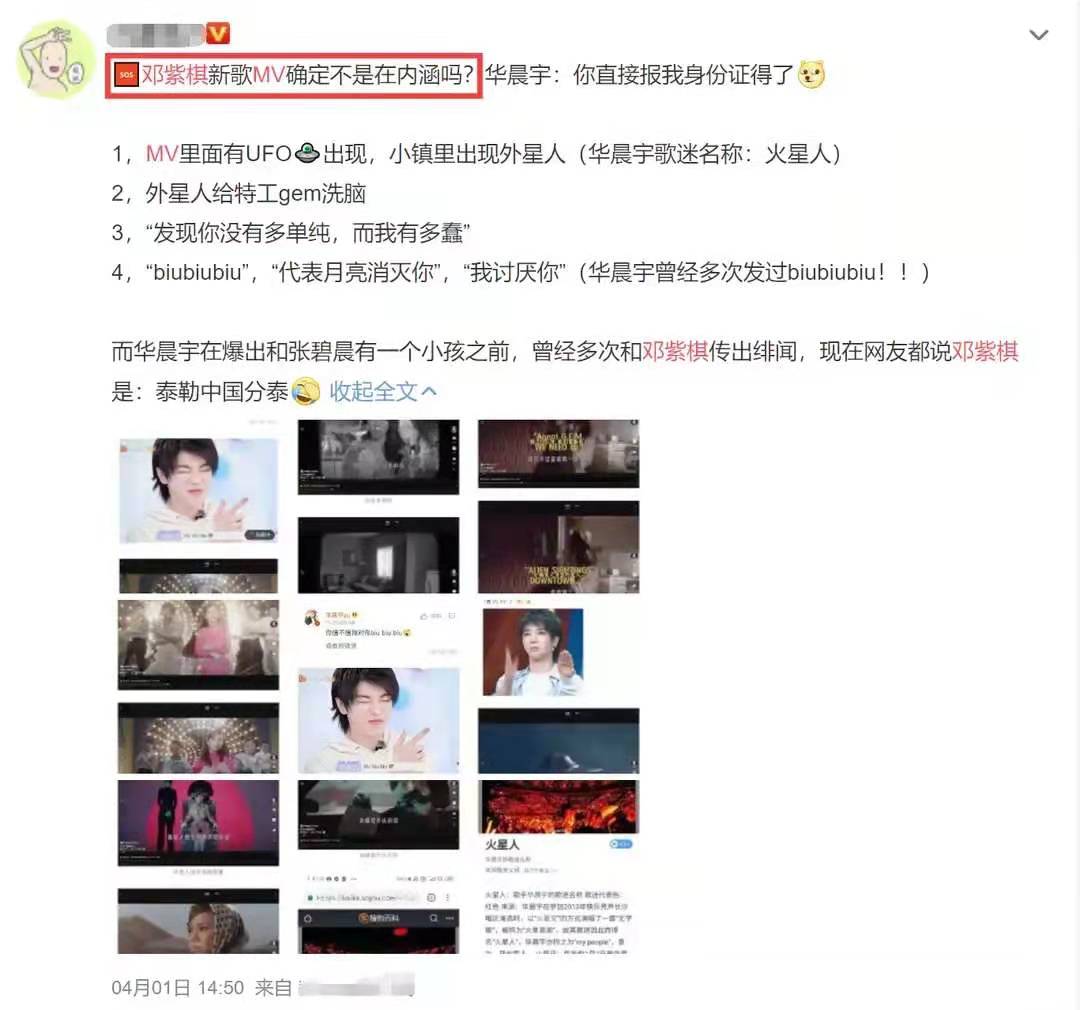 2018年8月,邓紫棋写了一首歌,叫《错过不错》,主要是唱两个相爱的人,因为各种原因和身份不能在一起,最后只能彼此祝福的故事。这首歌提到这个男人来自第四星球,火星是太阳系第四颗行星,而华晨宇就有火星人的外号。
