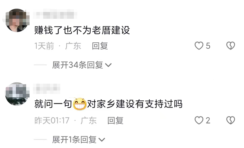 网友们看了蔡一杰回乡的照片后,纷纷留言。有人指责他不为家乡建设做贡献,也有人反驳不要道德绑架,做不做贡献是他的个人意愿,人家是否贡献跟别人没有半点关系。