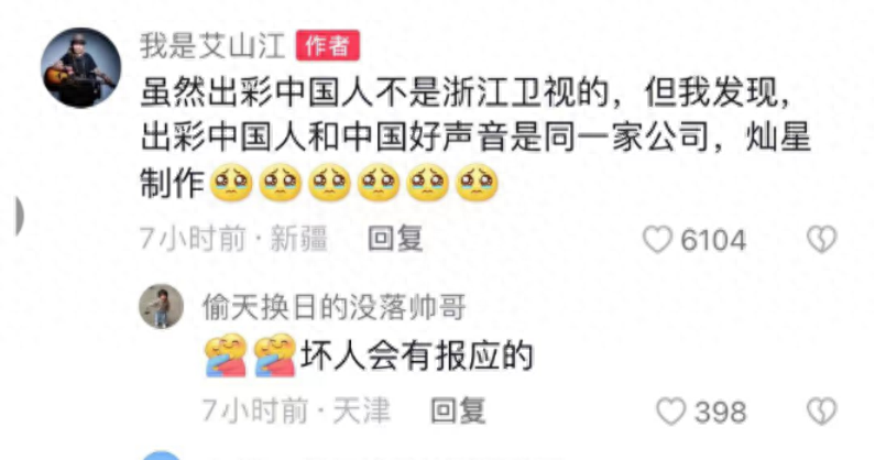 与此同时,歌手艾山江发布了一段视频,表示在参加节目《出彩中国人》时,他经历了恶意退赛和删剪的情况。尽管该节目并非由浙江卫视播出,但同样由灿星文化制作。众人对该节目的爆料还远没有结束——