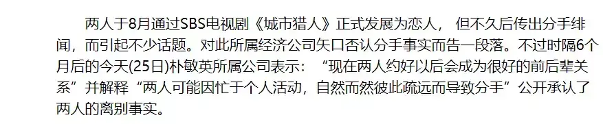当时的那个新闻可以说是一本正经的写着,说朴有天当时和SM正在闹合约纠纷,心情不好,而在和朴敏英的合作里,得到了安慰,两个人的互动都已经超出了一般同事的感情。