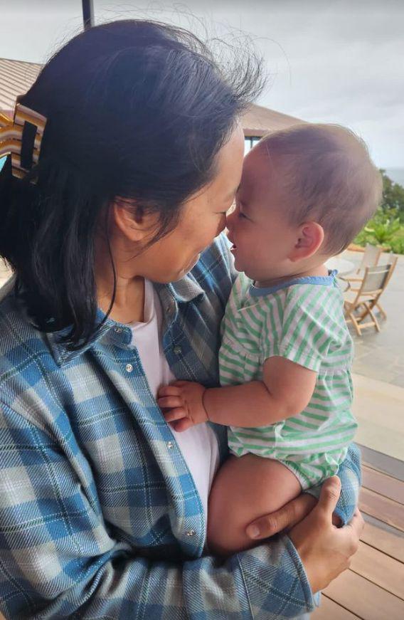 一晃小女娃已经快 10 个月大了。从侧颜看,现在的奥里莉亚长得似乎挺像她的妈妈的,当然,现在还很幼小,再长大一些会有变化的。