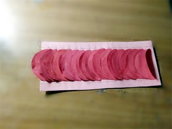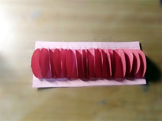 每贴一个圆,都往后折半厘米。把这些圆一个一个地粘好。