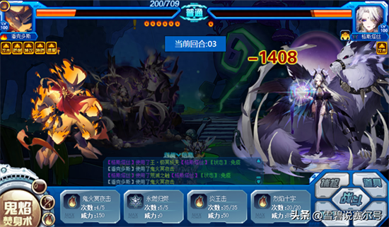 鬼焰·焚身术:先制+1;必中;消耗自身全部体力,减少对手当前体力的1/8,同时使己方下1只出场精灵获得1个等同于对手最大体力值1/5的护盾且下2次技能先制+2,护盾最多可获得1000点。对任何BOSS均有效,不管是蓝色免疫,还是黄色免疫。