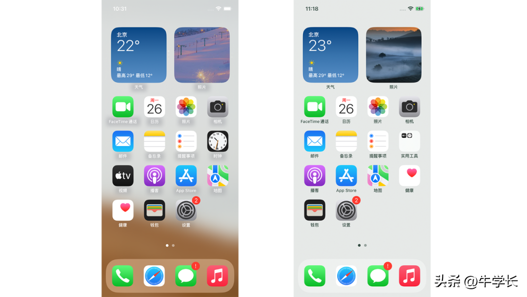 可以得知图标文字是根据壁纸主动识别显示的,确实是iOS系统自动适配合适的显示效果,