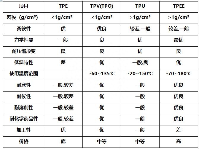 2、耐候性,TPV优于TPE,TPE优于TPU;