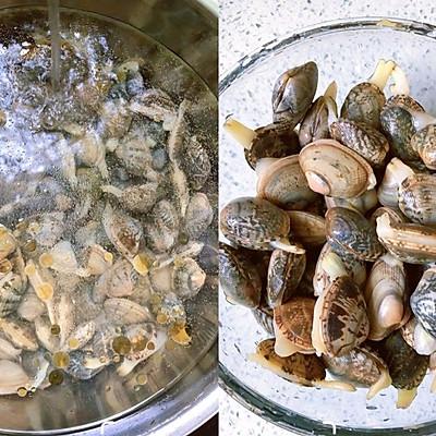 2、2️⃣、凉水下入洗净的花甲煮2分钟捞出沥干水份