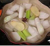 4. 放入葱段、姜片、八角大火烧开,煮10分钟左右。