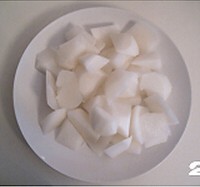 2. 白萝卜洗净去皮切滚刀块。