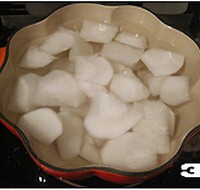 3. 锅中倒入足够量的水,白萝卜块入锅。