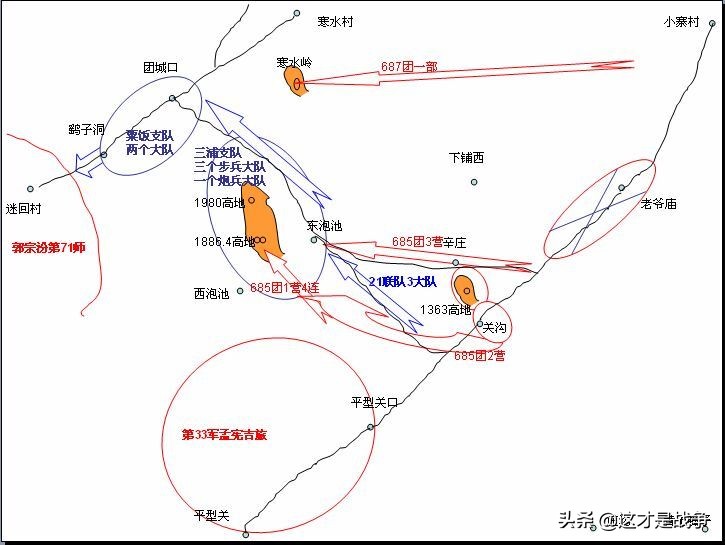 虽然苏静一再报告晋绥军那边没有动作,林彪并没有畏缩不前,而是更加积极地调动兵力,力争取得更大的战果。在老爷庙高地争夺战取得胜利,八路军再次将日军赶回公路加以聚歼的形势下,随着战斗接近尾声,林彪把685团、686团的部队逐渐地调往关沟、辛庄方向,命令杨得志、李天佑向东泡池方向发展进攻。须知,按阎锡山的“五路出击计划”,东泡池方向并非八路军的“责任田”,林彪这是要把日军赶到晋绥军的阵地面前去,聚而歼之。