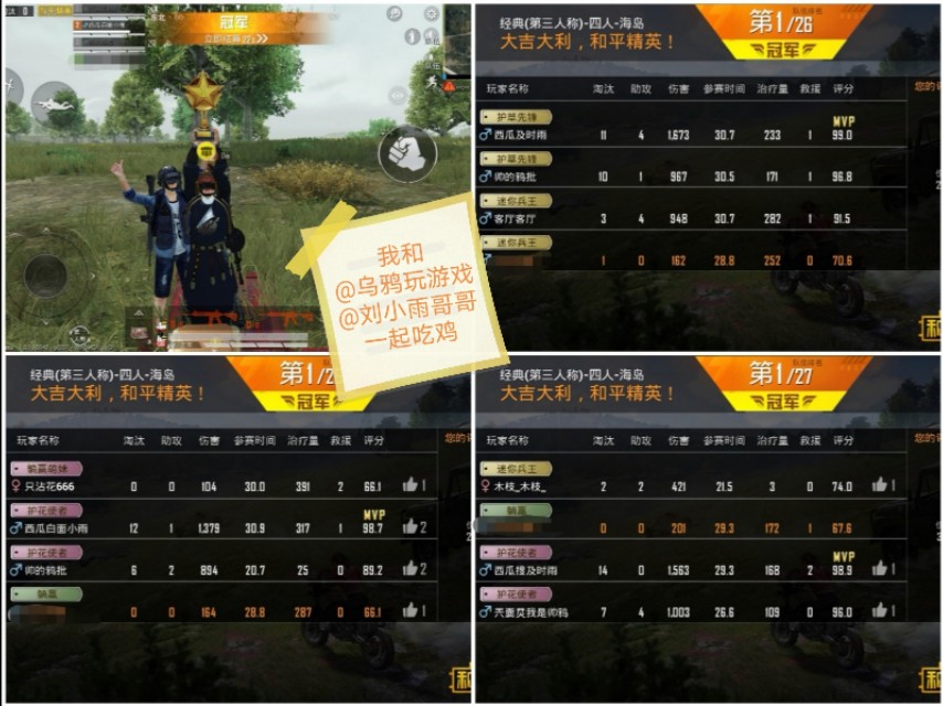 我想到的就是这些了,有不懂的地方就留言啊。我还以老撕鸡为例,详细地写了“怎样和老撕鸡一起玩和平精英”,欢迎到我的主页里去看。