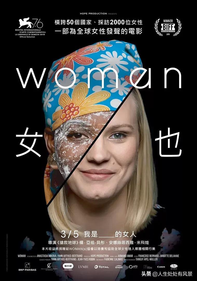 妇女节将至,许多与女权相关的电影将在戏院与观众见面,《女也》(Woman)由长期致力于环境议题的杨亚祖贝彤(Yann Arthus-Bertrand),与人权纪录片导演安娜丝塔西雅米科娃(Anastasia Mikova)共同执导,走访全球50个国家,访问超过2000名女性,不同肤色、国籍、语言,试图在占全世界一半人口的女性身上,挖掘如此多样的姿态。