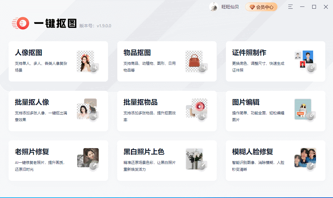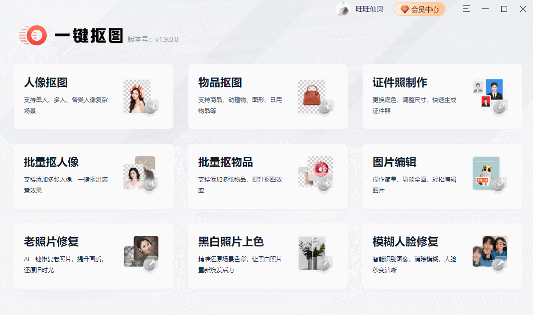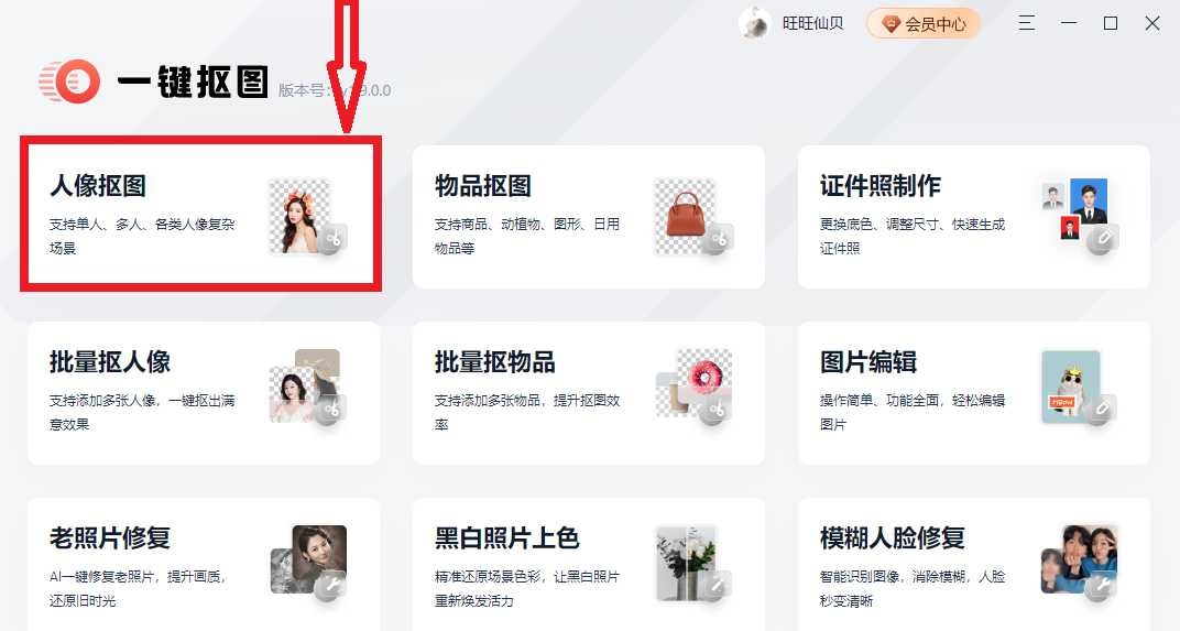 首先,我们需要用到一款功能强大的工具——【一键抠图】,这款工具支持人像抠图、模糊人脸修复、老照片修复、证件照制作等多个实用功能,操作非常简单,抠图只需一秒完成。