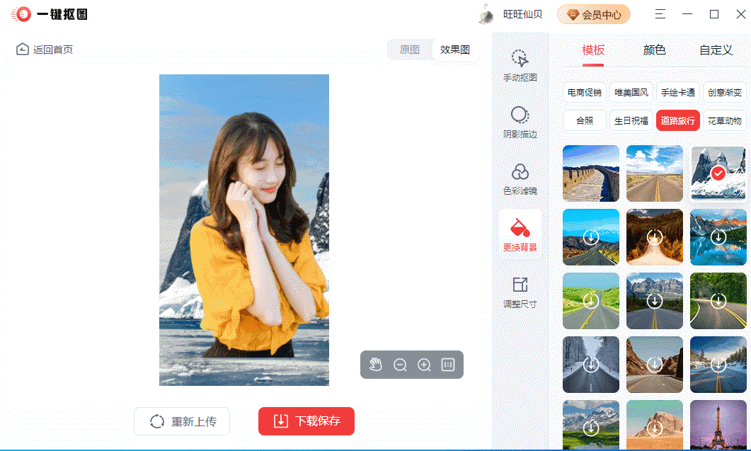 3. 假如你也像小编一样有添加背景的需求,那就可以选择软件自带模版进行添加。如果这都满足不了你的话,还可以选择自定义背景来进行更换哦!