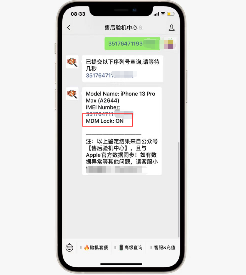 随即网友用过IMEI查询了该机的配置锁,可以看到该机的配置锁是开启状态,说明该机就是监管机。监管机内置的配置锁功能很强大,如果iPhone的配置锁是开启状态,就是监管机,关闭才是正常的。监管机由于很容易被锁,所以市面上的监管机都非常便宜,很多商家将监管机回收回来之后,再当正常零售机卖出去,从中赚取高额差价。如果机器被锁,那买家就成了背锅侠。所以监管机不要买。