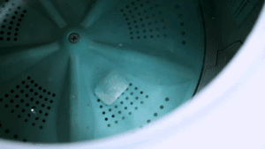 将这块“泡腾片”放进洗衣机,加满水,启动一下,就能将洗衣机彻底洗干净啦!