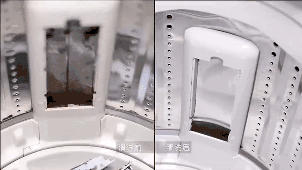 洗完之后,可以看到洗衣机槽前后污渍变化很明显,干干净净。