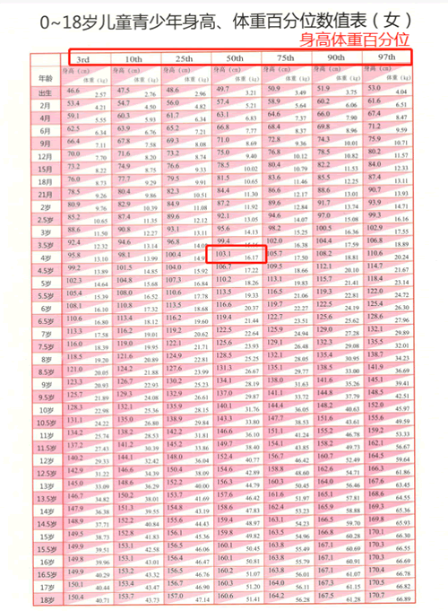 举例:4岁女孩,如果身高是103cm,意思是:她的身高在该年龄段50百分位,如果是100cm,就是25百分位,身高偏低,要继续加油!如果是108cm,就是90百分位,身高在正常范围内属于长得高的,非常棒!
