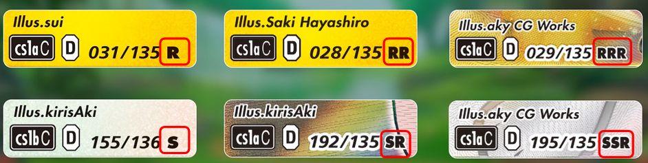 编号外罕贵度分别有:S<SR<HR<SSR<UR,CHR、(简中可能待推出:CSR、SAR)