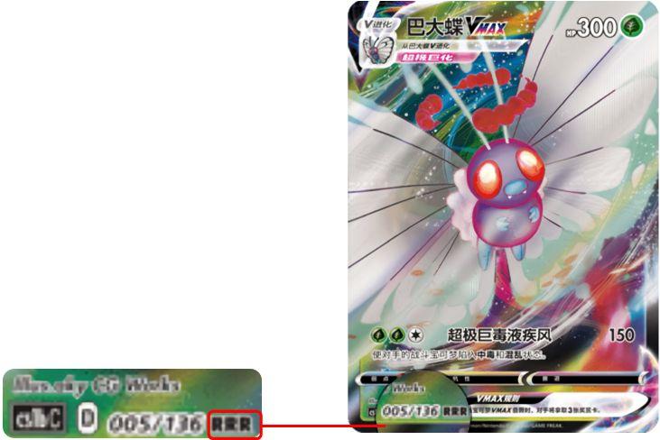 简中3.0新出的RRR卡,目前均为Vmax宝可梦,卡面有闪光效果,摸上去有轻微浮雕纹理,主要是对战中的卡组核心。