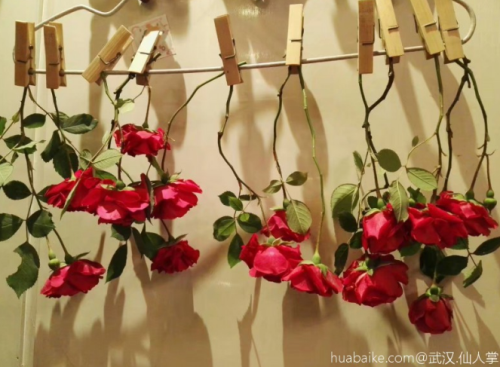最后再给大家介绍一种永久保鲜的方法:把花朵倒挂起来,放到阴暗处自然晾干,这样它就不会凋谢了,还能一直保持鲜艳的颜色,称为一枝独一无二的干花。