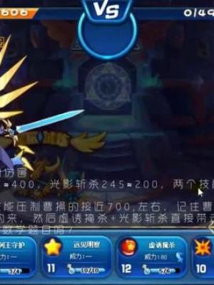 “骑士迪莫”过“曹操孟德”“曹操孟德”这个BOSS的机制就是,在“曹操孟德”半血以前“曹操孟德”每次提升起3级物攻的时候下个回合就会给我们造成500的固伤,所以在“曹操孟德”一旦提升起3级物攻我们就必须使用【远见明察】清除“曹操孟德”的物攻强化,这个过程我们还要强化起自己的技能六级双抗和六级闪避和六级物攻来。