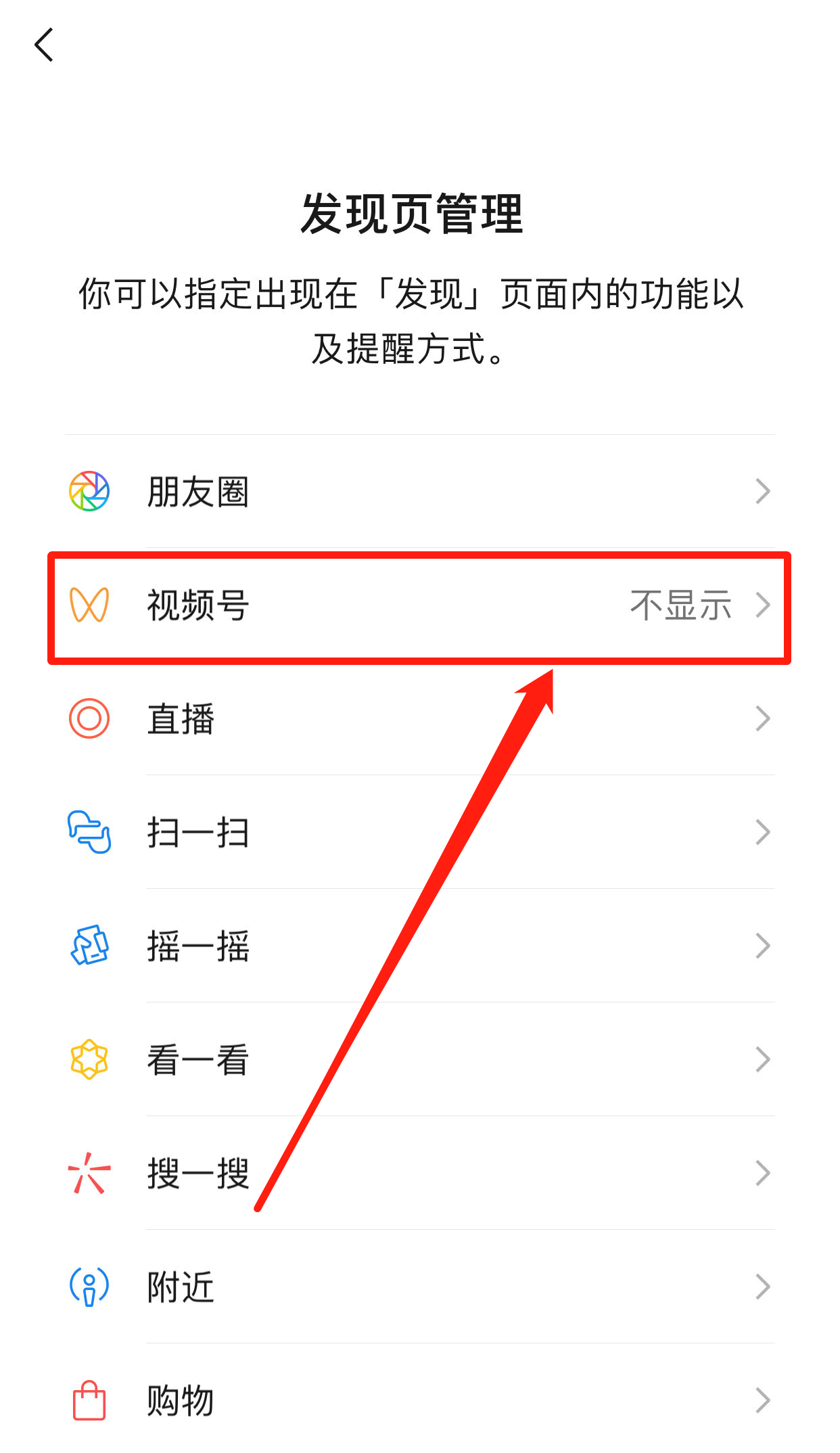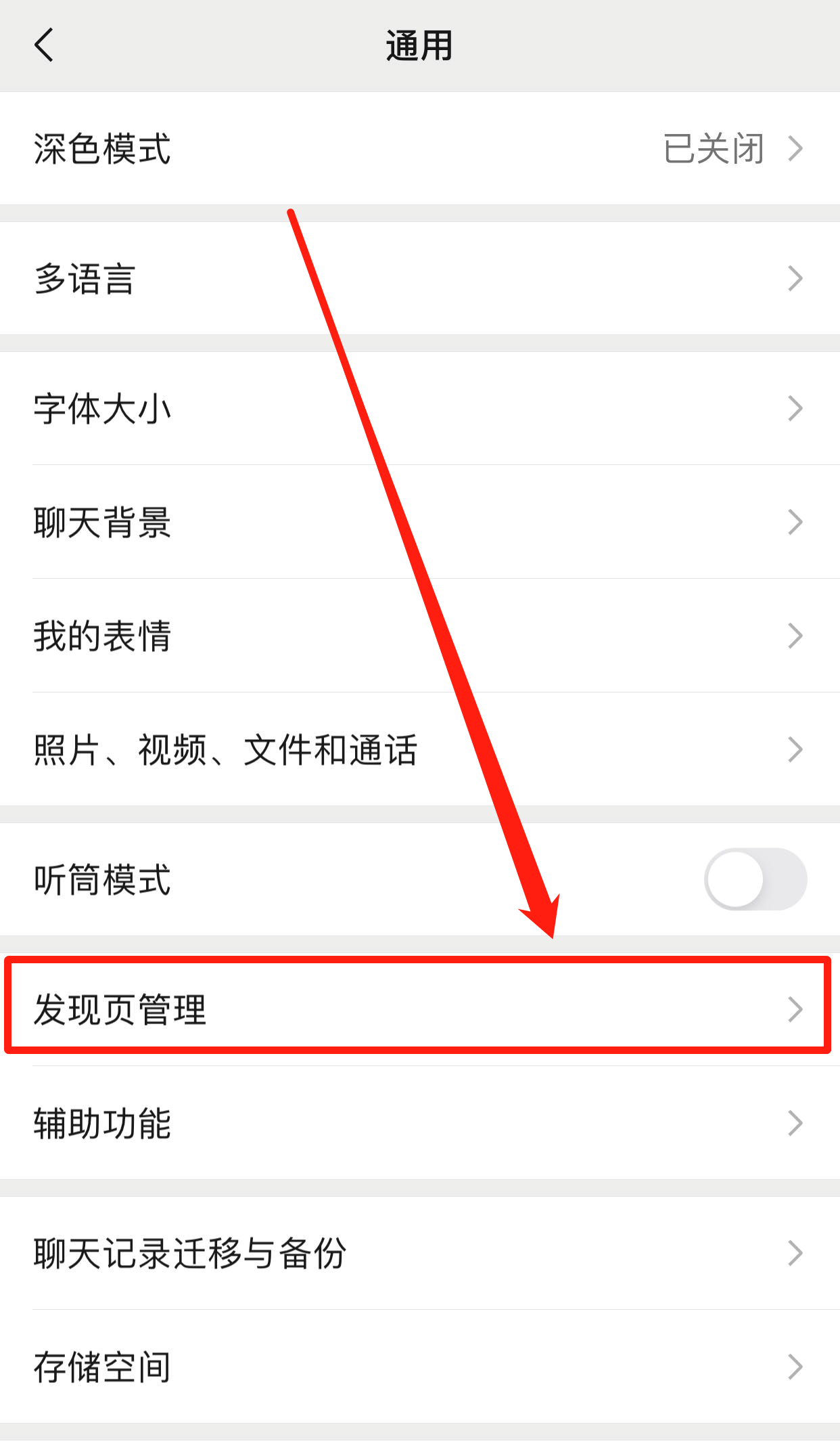轻点“发现页管理”选项。