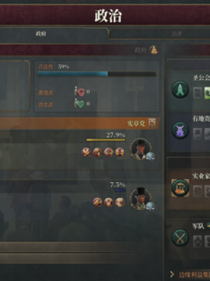 和「小市民」两大集团组成「人口丧心病狂群」、「利益集团」构成了V3所有政治玩法的基础,玩家通过改组政府、吸纳「利益集团」,可以获得他们的“BUFF”(也可能是“DEBUFF”),而玩家想要通过某项法律,也需要来自「利益集团」的支持,而这些法律不可避免地会影响到各种「人口群」,从而影响他们对于权力机构的态度。V3的终极目标当然社是:自己所操作的国家,国富民强,人民生活水平逐渐提高。但在这个过程中,「人口群」会产生变化,他们对于工作、生活的需求,也会家有产生变化。