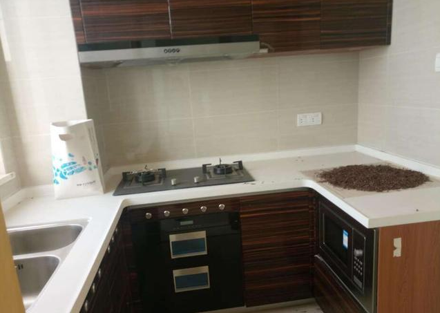 厨房是的板面选择树木的纹理很耐看,同时颜色深耐脏。